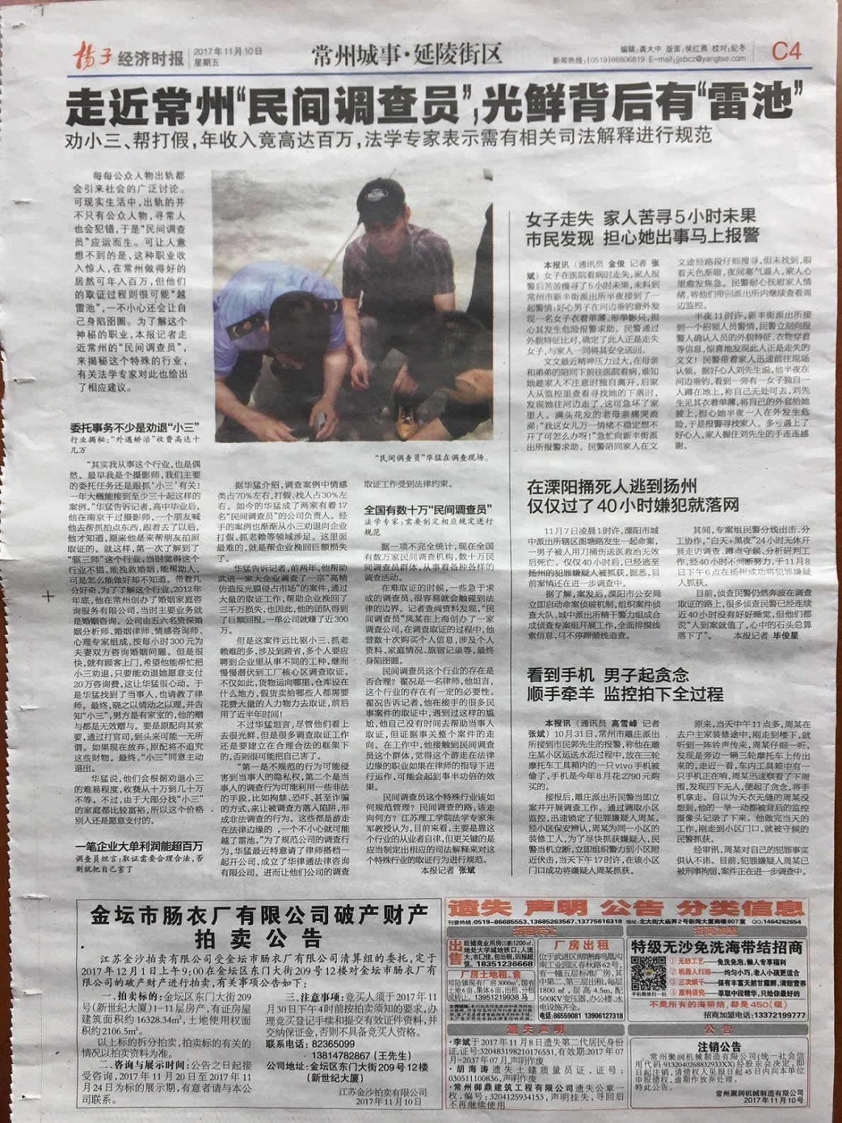 采访好评核心:2009年常州已经出现民间调查行业,合法合规调查举证